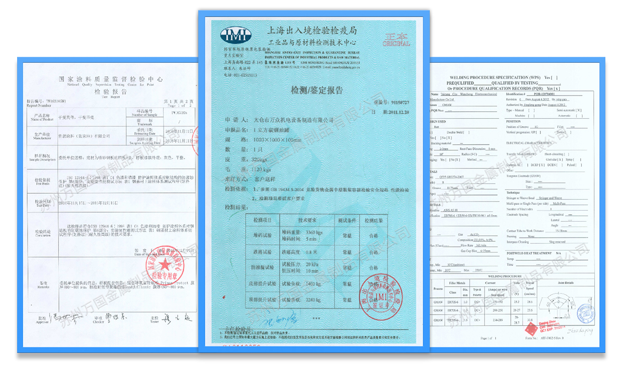 我們嚴格地運行生產(chǎn)過程的質量管控和成品檢驗,并擁有WPS焊接工藝評定、C4-H防腐認證、罐體鑒定檢測報告等,確保給客戶提供高品質、高性能的產(chǎn)品